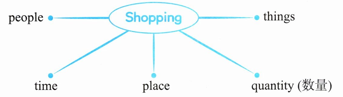 你有和爸爸妈妈一起购物的经历吗?假如你是图中的女孩,你们都买了些什么呢?结合图片,以“Shopping”为题,描述一下你上周末购物的情景。