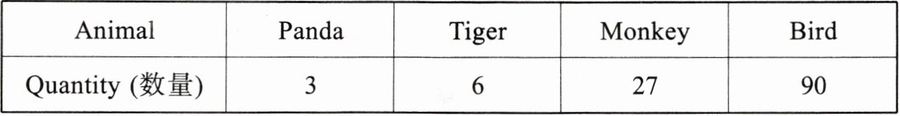 . There are six tigers and twenty-seven monkeys. There are ninety birds. But there are only three pandas. My favourite animal is the panda. It is black and white. It is very cute.