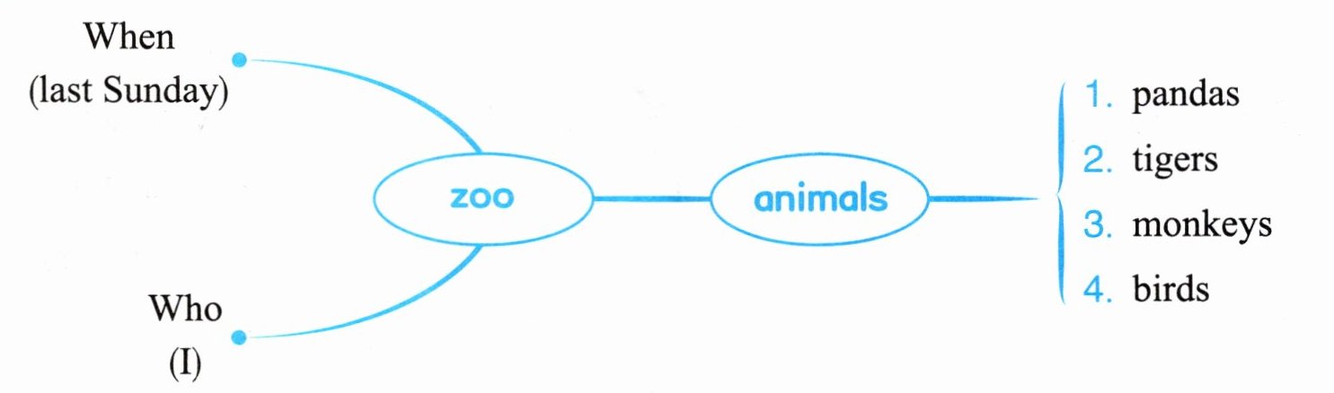 根据表格提示,写一篇关于你上周日去动物园的短文,并写一写你最喜欢的动物。