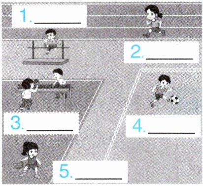 新考向 课间休息时间到了,同学们正在操场上做运动。看图,给人物匹配对应的句子。