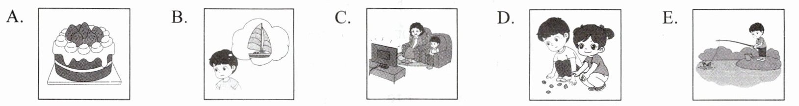 Xiaoyu在奶奶家度过了一个丰富多彩的暑假,他都用照片记录了下来。读一读,选择与句子相符的图片。