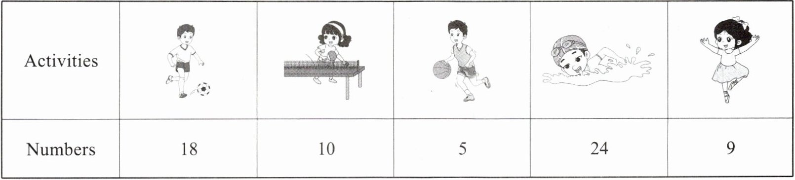 Mr Li 对自己班同学上周末的活动做了调查。阅读调查报告,完成任务。