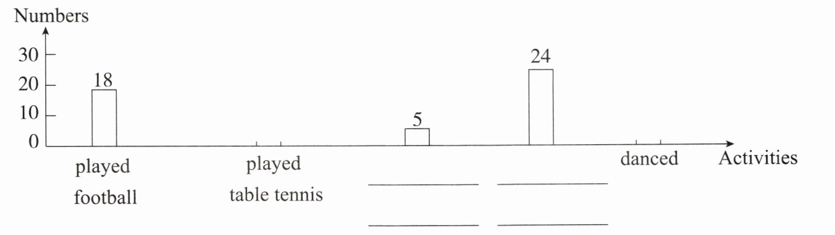 提示:画出的条形图分别对应 10 和 9,横线上填 played basketball 和 swam。