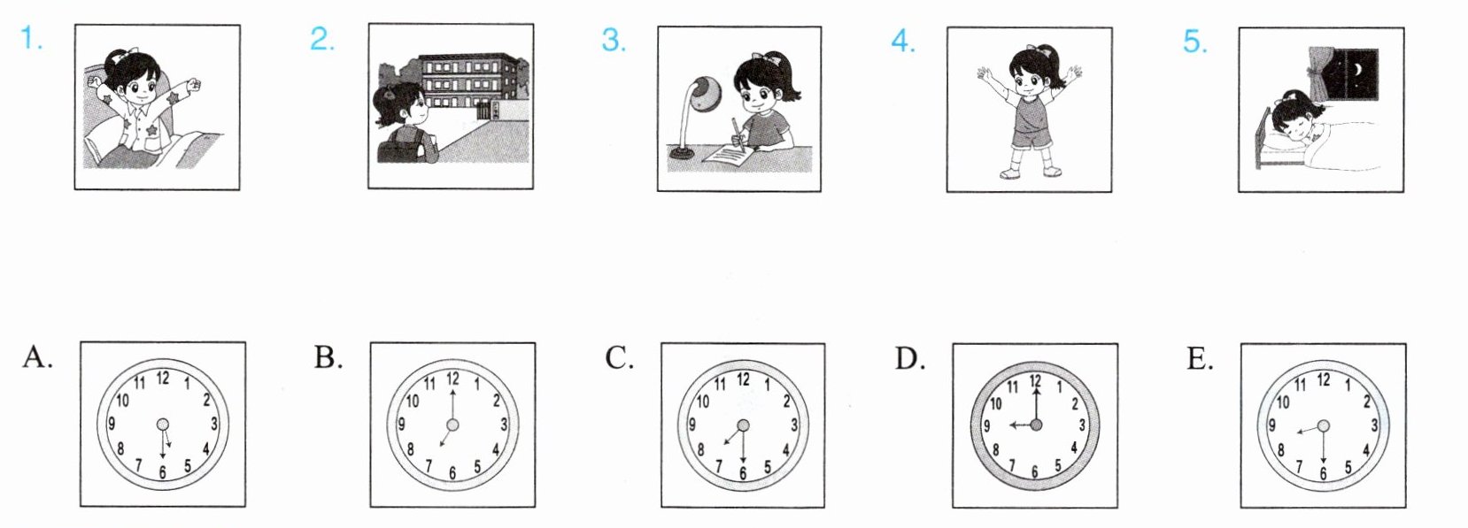 二 听录音,给 Amy 一天的活动匹配相应的时间,并连线。