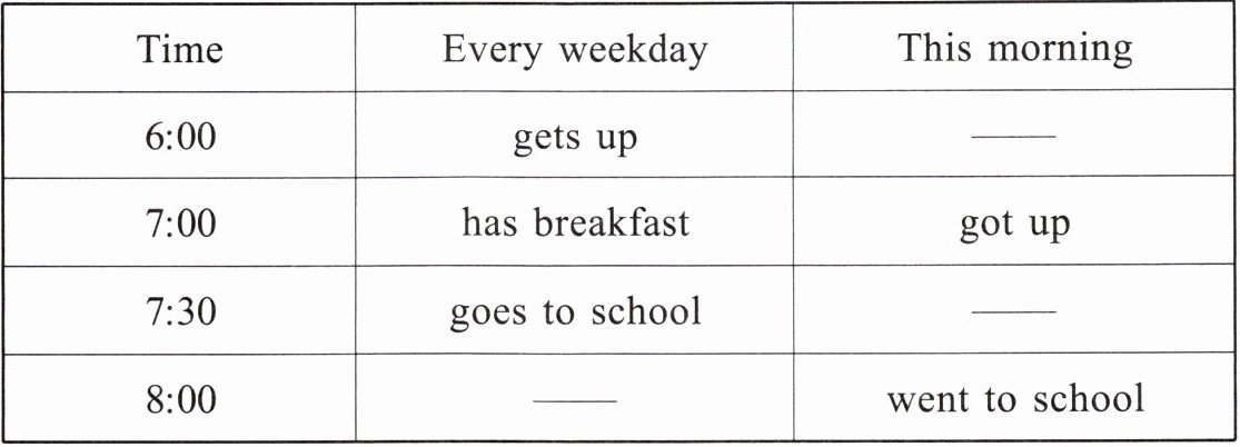 Last night he went to bed very late. So he got up at seven o'clock this morning. He didn't have breakfast. He went to school at eight. He was late for school. His teacher was unhappy. He said sorry to his teacher.