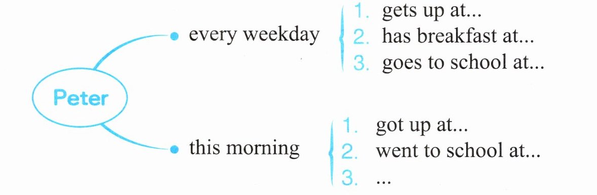 Peter is a student. Every weekday he gets up at six. Then he does sports. He often has breakfast at seven o'clock. After that he goes to school by bike at half past seven.