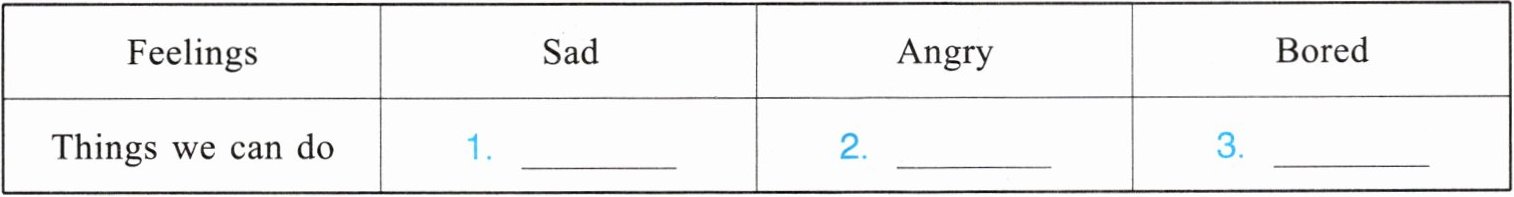 We have different feelings at different time. Sometimes we feel happy. Sometimes we feel sad. Sometimes we feel angry and sometimes we feel bored. When we feel sad, we can think about the happy time. When we feel angry, we can listen to music or do some sports. When we feel bored, we can play with our friends or read books. We have different feelings and that is how life is. We can do different things to share and face (面对) the feelings.