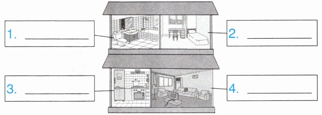 1. kitchen 2. toilet 3. hides 4. sofa; living room 5. last