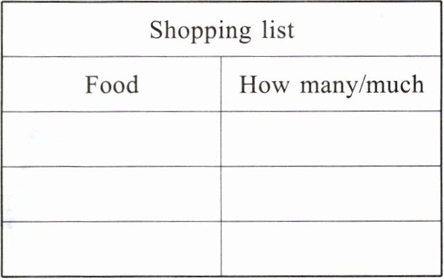 二新考向 听录音,完成购物清单。