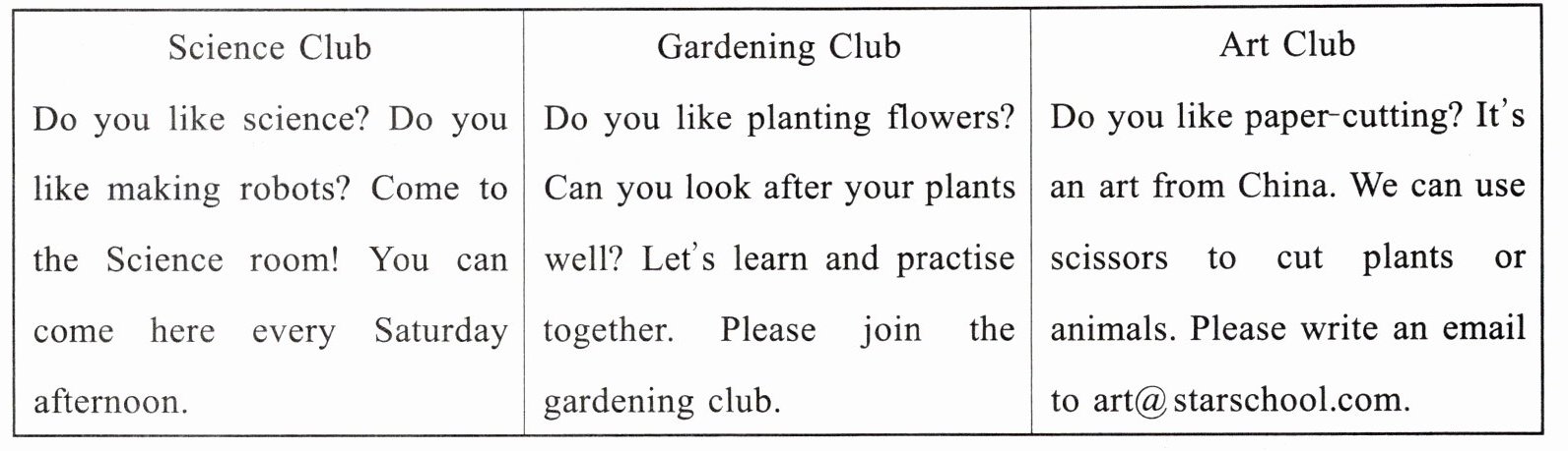 )3. Sam's hobby is planting. He can join the art club.(