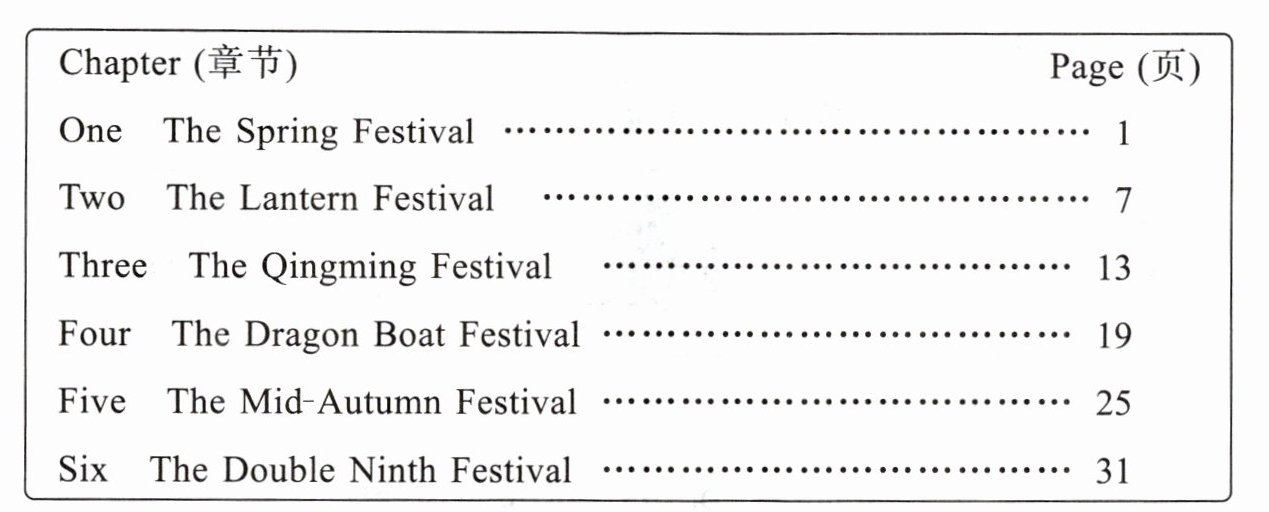 Lily 阅读了一本有关中国传统节日的书籍,根据其目录,判断下列句子正(T)误(F)。