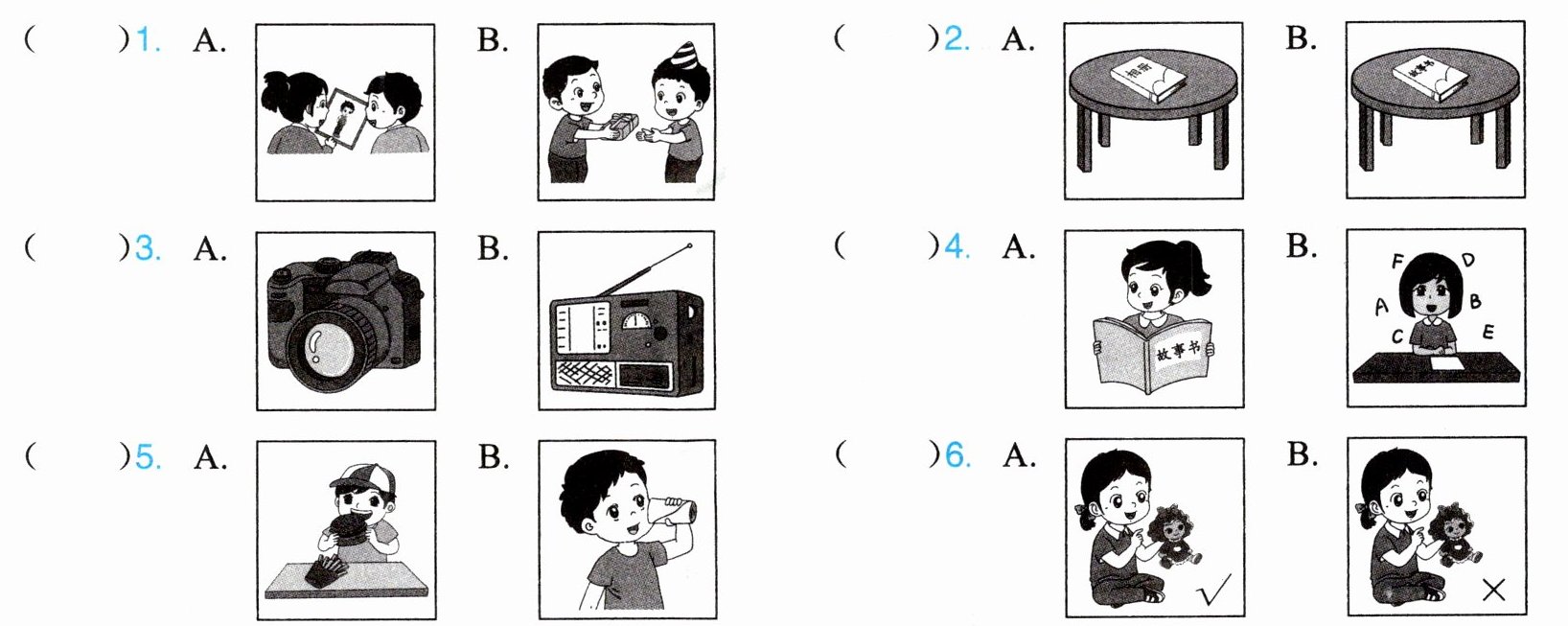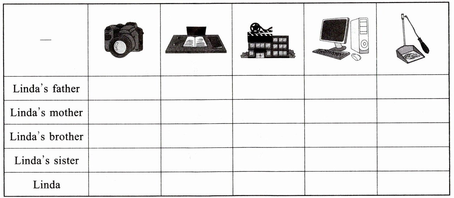 二、Linda 正在讲述自己和家人周六经常做的事情。听录音,在表格相应的位置打“√”。
