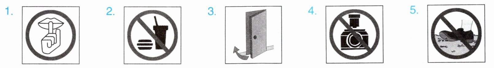 五 在生活中标志随处可见。看图,给下列标志配上正确的注释。