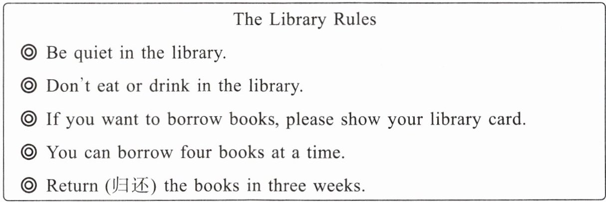 )4. We can borrow four books at a time.任务二:根据所给内容,回答问题。
