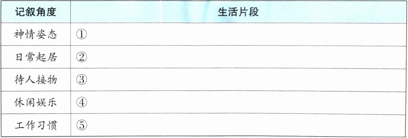 为了更好地选取展览素材,更全面地展示鲁迅先生的生活印记,请你仔细阅读课文,梳理文中关于鲁迅先生的生活片段,并按下表进行分类。