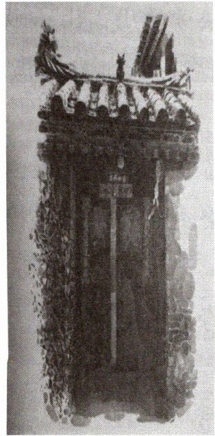 说明:插图画了在昆明人家门头上挂一个倒挂的开花的仙人掌,据说有辟邪的作用,表现出昆明的雨近乎夸张的旺盛,给予自然旺盛的生命力。