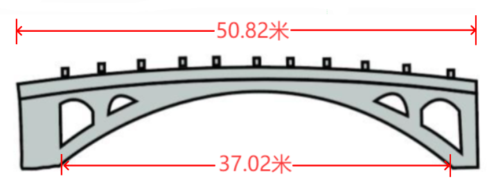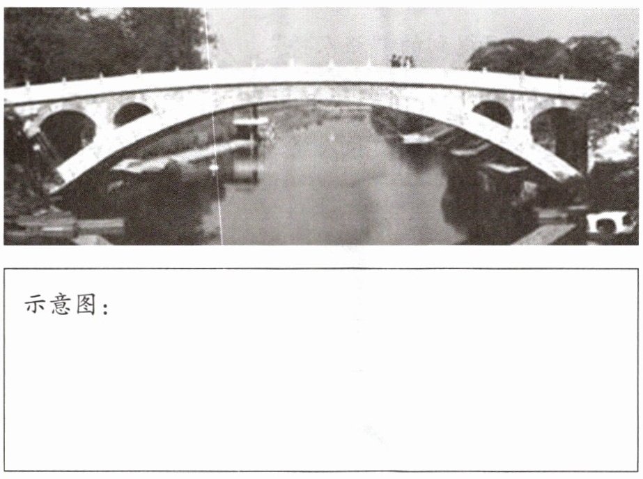 一、根据插图和课文的描述,画出赵州桥示意图并在相应的位置上标出数据。