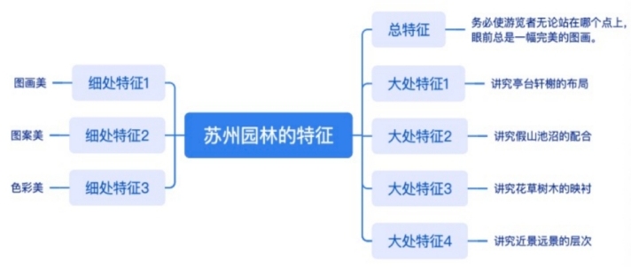四位同学领取到合作画图的任务,他们走入字里行间,想共同研究出一幅最能说明“苏州园林特征”的图。