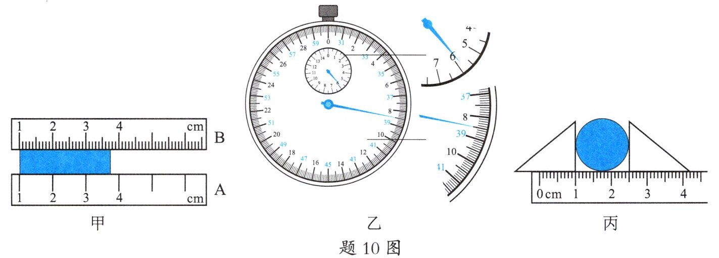 s。(3)如题 10 图丙所示,小丽同学测量一根小木棒横截面的直径,其直径是