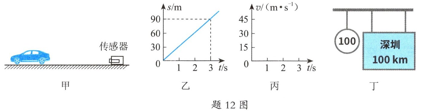 (2)在遵守交通规则的前提下,汽车从题 12 图丁所示标志牌处最快需用______ min 到达深圳。