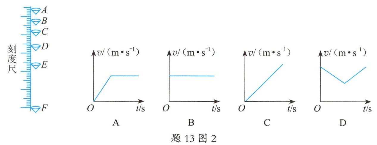 。(5)下列四个速度随时间变化的关系图像,能正确反映出题 13 图 2 中纸锥下落运动的是