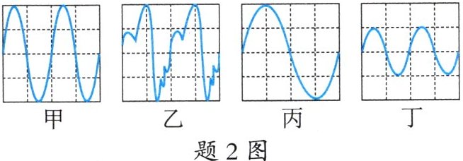 2. 如题2图所示为同一示波器显示的几种声波的波形图,其中