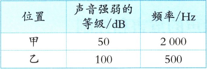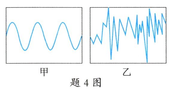 4. 在对环境声音的监测中,监测器测出甲、乙两处声音的特性如题4表所示,甲、乙两处声音的波形如题4图所示,可知(