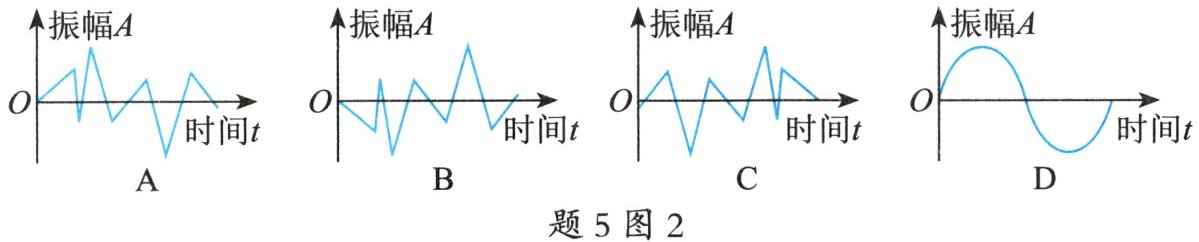 (4)降噪耳机也利用了“有源消声技术”:若噪声源的波形如题5图1乙所示,下图能够抵消噪声源振动的新噪声是