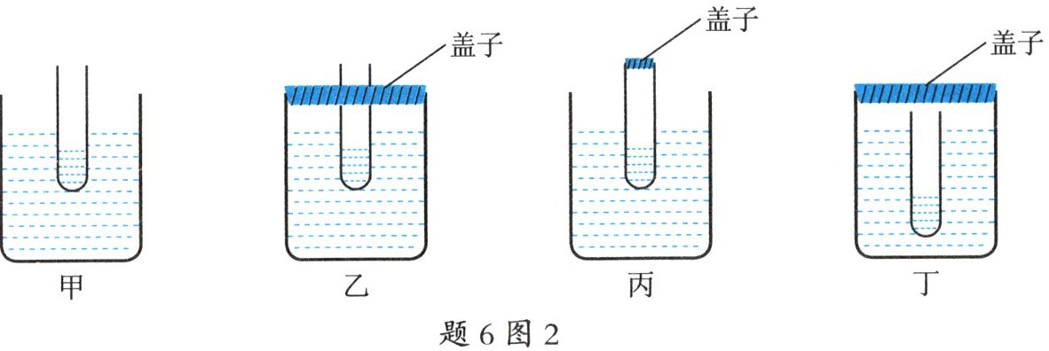 (2)如题6图2所示,烧杯和试管中都装有水,将4个烧杯中的水加热,使之保持沸腾,则在烧杯中的水不断沸腾的过程中,试管中的水能沸腾的是图