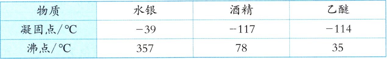 |凝固点/$^{\circ}C$|-39|-117|-114|