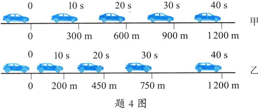 4. 题4图记录了甲、乙两车在同一平直公路上行驶时,在相同的时间内通过的路程。以下分析正确的是(