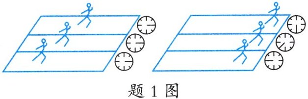 1. 题1图是田径运动场上比赛示意图,关于运动的快慢的比较: