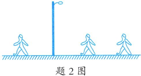 2. 如题 2 图所示,小明夜间从远处走近又远离一盏路灯的过程中,他的影子长度变化情况是(