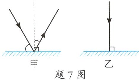 ;题7图乙中,光线垂直入射时,入射角为______0°