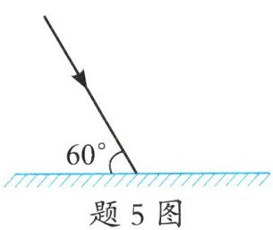 5. 如题5图所示,光线与镜面成60°角射到平面镜上,请在图中画出反射光线并标出反射角的大小。