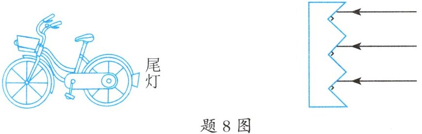 8. 如题8图所示,夜晚用手电筒在自行车正后方照射自行车尾灯,会发现尾灯很明亮。下列说法正确的是(