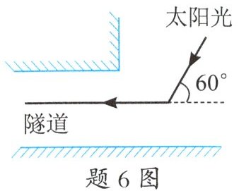 6. 如题6图所示,小明利用一块平面镜使太阳光水平射入隧道内。请你通过作图画出平面镜并标出反射角的大小。