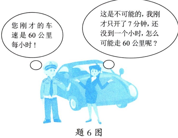 6. 某城市中心路段汽车限速为40km/h,一名司机因开车超速被警察拦下。阅读题6图中警察和这名司机的对话,请利用所学的物理知识,帮助警察向这名女士解释她被拦下的原因。