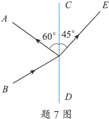 7. 如题7图所示,光在玻璃和空气的界面CD同时发生了反射和折射,以下说法正确的是(