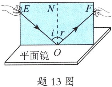 。(2)在题 13 图中,如果让光线逆 OF 的方向射向镜面,会看到反射光线沿着 OE 方向射出,这表明