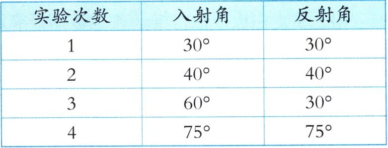 实验次数入射角反射角130°30°240°40°360°30°475°75°