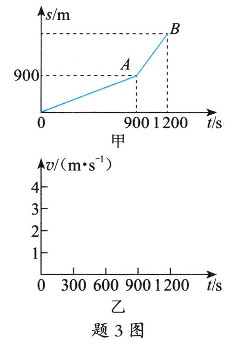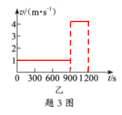 3. 小明从家中走路上学,后面发现快迟到了,改为骑共享单车,以$4m/s$的速度骑车去到学校,其运动的$s-t$图像如题3图甲所示。