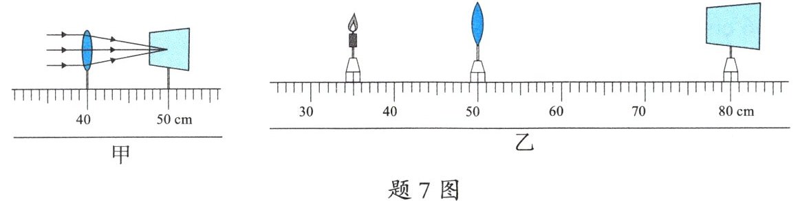 cm。(2)如题7图乙所示,蜡烛和凸透镜的位置不变,当移动光屏到合适的位置,可在光屏上承接到一个倒立、