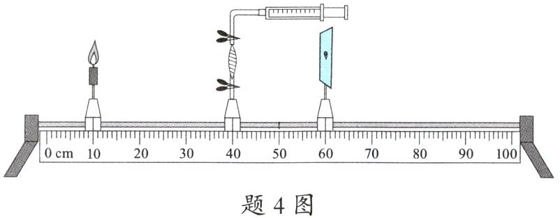 4. 如题4图所示,小白用水凸透镜模拟人眼的晶状体,光屏相当于视网膜。当用注射器向水凸透镜内注水时,水凸透镜的凸起程度增加,光屏上原来清晰的像变模糊了。为了再次得到清晰的像,应将光屏
