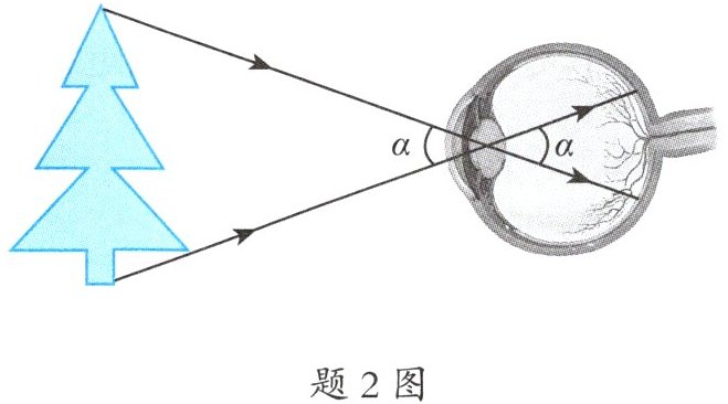 2. 如题2图所示视角是从物体两端引出的光线在人眼光心处所成的