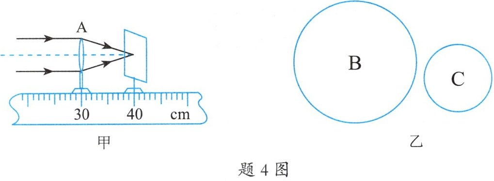 cm。此外还有2个焦距均为20.0 cm的透镜B和C,如题4图乙所示,最适合作为目镜的是透镜A