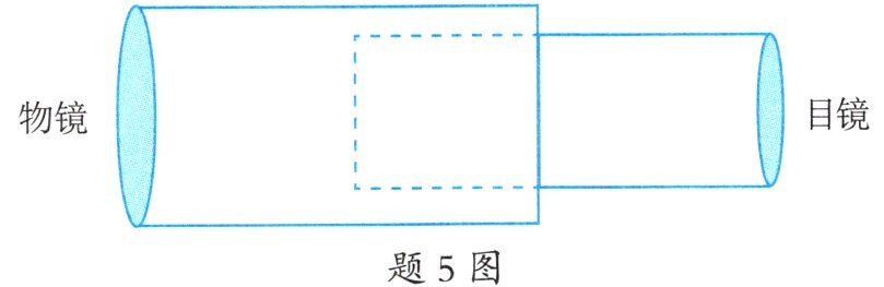5. 如题5图所示,项目小组制作了简易望远镜,观察最远处的物体时,物镜所成的像大致的位置位于物镜的