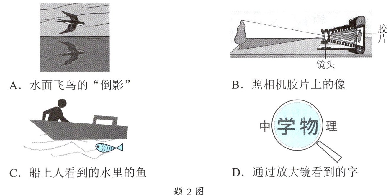 2. 如题 2 图所示的四个情景中,成实像的是(