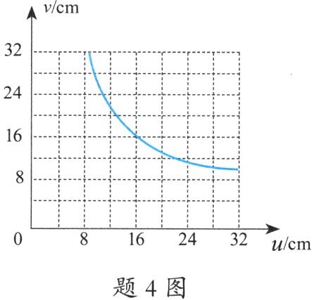 4. 小深在做“探究凸透镜成像的规律”的实验时,记录实验数据并绘制物距 $ u $ 和像距 $ v $ 之间的关系图像如题 4 图所示,下列说法正确的是(