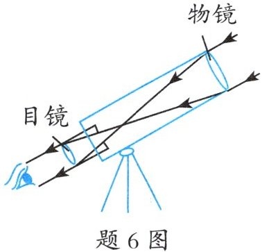 6. 小深爸爸是天文爱好者,如题 6 图所示是小深爸爸平时使用的望远镜,其物镜和目镜都是凸透镜。下列说法正确的是(